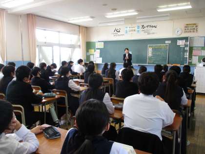 生徒たちは自分の事業所が発表されるのを真剣に聴いていました。