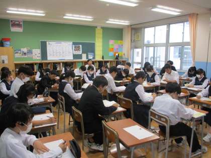 真剣な表情で道徳の授業を受けています。 上:3−4 中:3−5 下:3−6