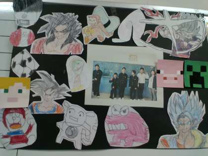 ひまわり1組の全体写真が完成しました。それぞれお気に入りのキャラクターを描いて写真を飾っています。