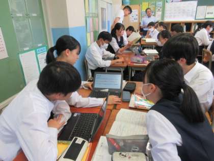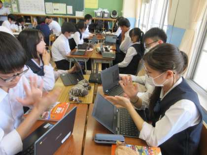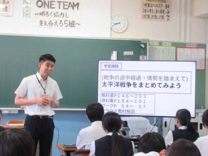 6月11日(火)3学年社会科の授業 公開日 2024/06/12 更新日 2024/06/12 3学年 3年5組の社会科で太平洋戦争についてまとめる授業を行いました。 2時間かけて各自が調べたことを4人班で発表し、それぞれの工夫点などよかったところを伝え合いました。