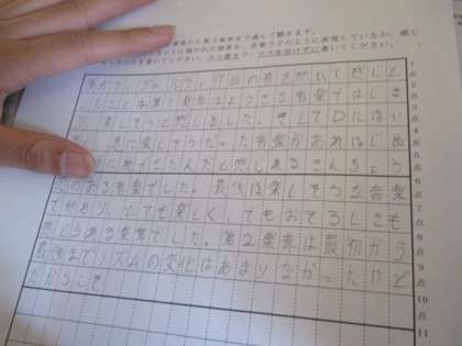 写真上:3組 音楽 生徒の鑑賞文の一例