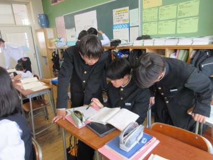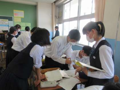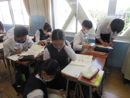 6月11日(火)2学年国語科の授業 公開日 2024/06/12 更新日 2024/06/12 2学年 文法の学習で、教科書やポイント解説、国語辞典を参考にしながらプリントに取り組んでいます。「『い』で終わるから形容詞じゃない?」「あ、そっか〜!」など、教え合いながら問題を解いていました。