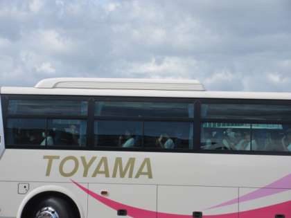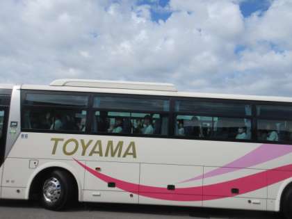 集合完了し、バスが出発しました。どのクラスもニコニコの笑顔で手を振っています。
