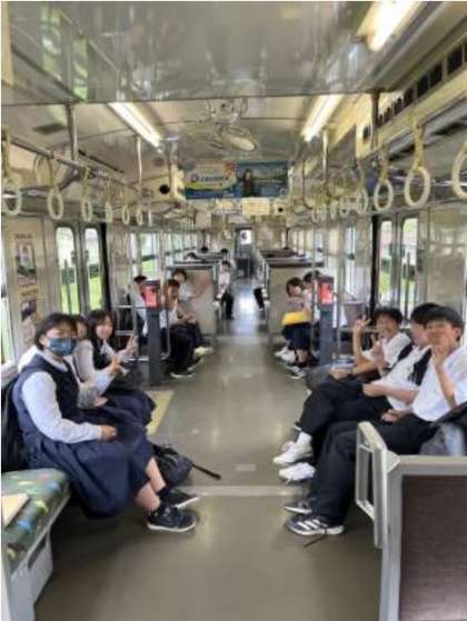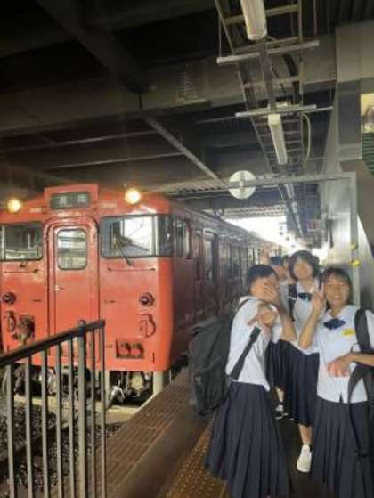 写真上:JR氷見線の車両とパチリ 写真下:JR氷見線に乗り、いざ雨晴海岸に向かいます!
