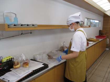 黙々とパンの袋詰めを行っていました。おすすめを聞くと、悩みながらも答えてくれました。