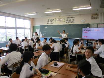 ALTの先生と一緒に、英会話の練習をしています。「What subject do you study?」「I study ○○」などの会話が聞こえました。やはり、ネイティブの方との授業は楽しそうです。