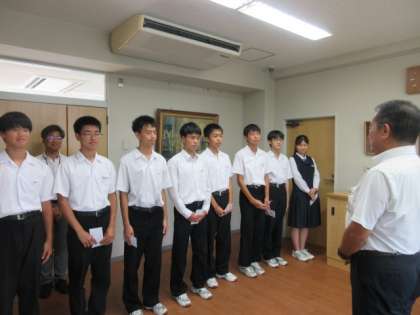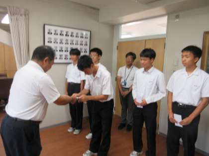 7月18日(木)激励会 公開日 2024/07/19 更新日 2024/07/19 そ の 他 北信越大会に出場する生徒の激励会を校長室で行いました。生徒たちは少し緊張した面持ちで臨み、大会への思いを述べました。