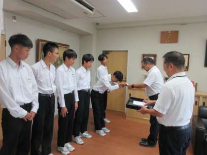 北信越大会に出場する生徒の激励会を校長室で行いました。生徒たちは少し緊張した面持ちで臨み、大会への思いを述べました。