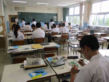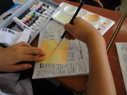 写真中:2組 美術 気持ちよく使えるコースターにしよう