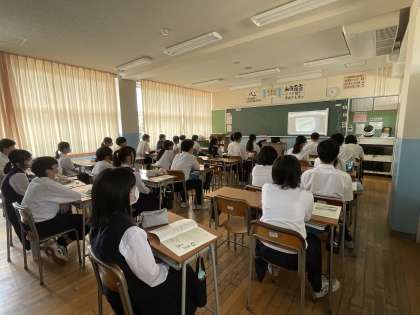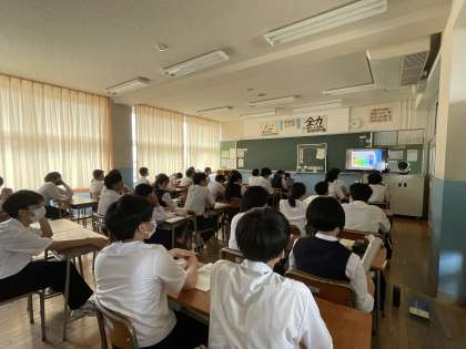 学年生徒会からは、1学期の振り返りがありました。発表によると、1学期は「心」を成長させながら、「意力」を高めようと頑張ってきたことが分かりました。とくに「社会に学ぶ『14歳の挑戦』」では、98.7%の生徒が今年の目標であった「働くを感じとる」ことができたと答えたそうです。また94.3%の生徒が「働く喜び」を見つけることができたと答えたことから、ほとんどの人がスローガンを達成できました。この1学期は、2学年の成長をとくに感じた4ヶ月間でした。2学期もさらに成長した姿が見られることを楽しみにしています。
