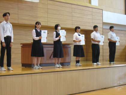 7月24日(水) 受賞披露 公開日 2024/07/24 更新日 2024/07/24 学校行事 1学期、様々なところで受賞した生徒が紹介されました。 新庄中学生の代表として名誉あることです。 2学期も多くの生徒が活躍することを期待しています。