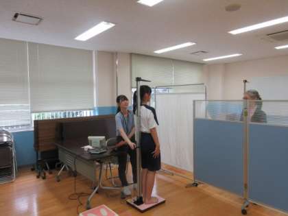 身体測定や視力検査を行いました。 どの学年も整然と行動する姿が見られました。