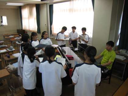 新庄中学校では、クラス合唱だけではなく、全校合唱と学年合唱も歌います。今日は学年合唱の「夢を追いかけて」を練習していました。
