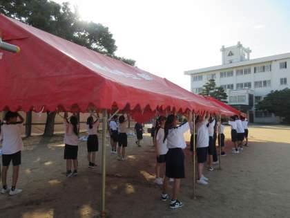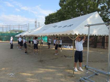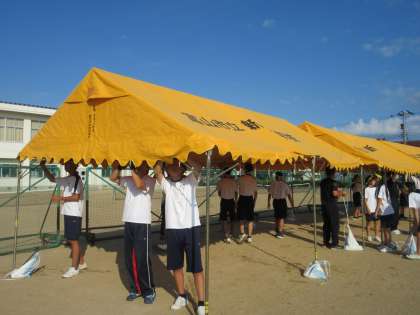 今日も朝早くから団役員が中心になってテントの準備をしました。