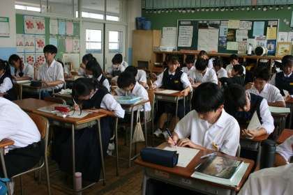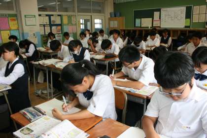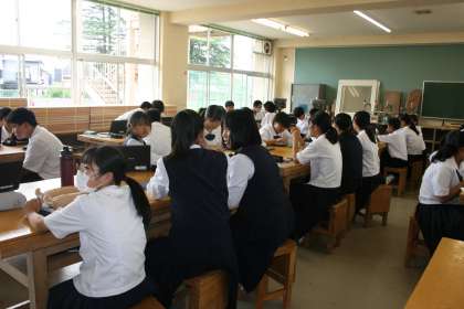 学級みんなの夏休みの課題をみてクロムブックを用いてコメントを記入しています。