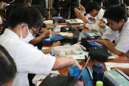 9月18日(水) 2年生授業の様子 公開日 2024/09/18 更新日 2024/09/18 2学年 2−1家庭科 スナップボタンをつけています。 きれいにつけられるように動画を見ながら作業している生徒もいます。 2−2国語 「字のない葉書」の最後のまとめをしています。 主人公の気持ちになって考えています。