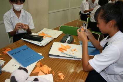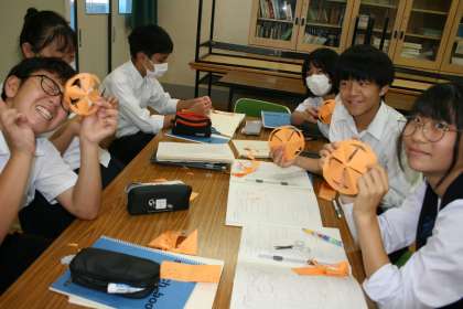 9月20日(金) 2年生授業の様子 公開日 2024/09/20 更新日 2024/09/20 2学年 2−1美術 色紙を折って、シンメトリーなどの家紋を作っています。 2−2数学 一次関数の利用について学習しています。 グラフを利用するとわかりやすいですね。