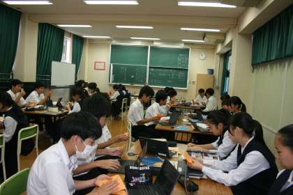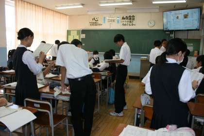 新しい単語の練習をしています。ペアで声を出して練習しています。