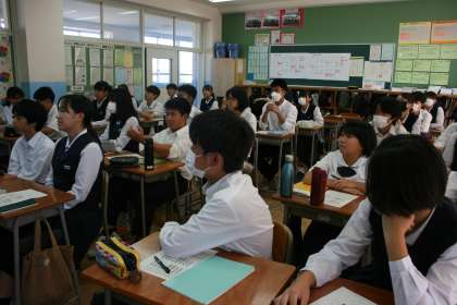 9月24日(火) 2年生授業の様子 公開日 2024/09/24 更新日 2024/09/24 2学年 2−4英語 こちらも多くの単語練習をしてます。 声を出して覚えることで定着しやすいですね。 2−5理科 BTB溶液を使って光合成と呼吸の関係について学習しています。