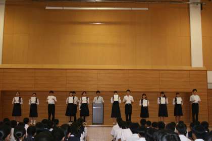 9月25日(水) 生徒会認証式・任命式 公開日 2024/09/25 更新日 2024/09/25 学校行事 5限目に生徒会認証式・任命式がありました。 後期の生徒会メンバーがそろい、たくましい姿がみられました。 後期生徒会の活躍を期待しています。