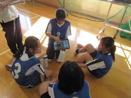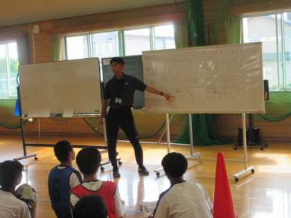 次に、「攻撃」「守り」「撮影」「話し合い」のグループに分かれてゲーム練習を行い、動画を見て気付いた改善点を全体で共有しました。