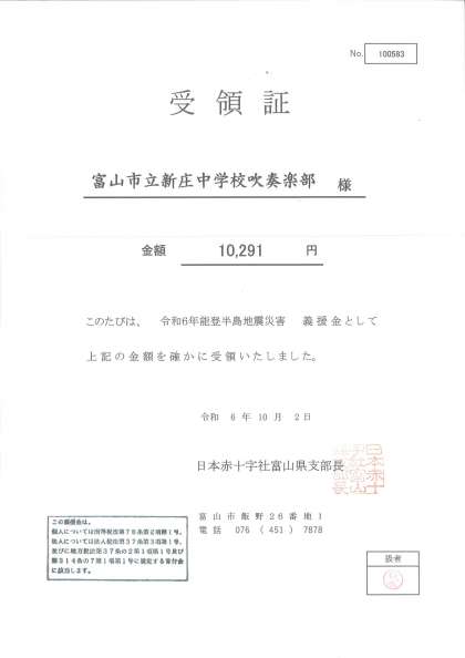 義援金へのご協力ありがとうございました(吹奏楽部)