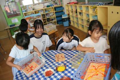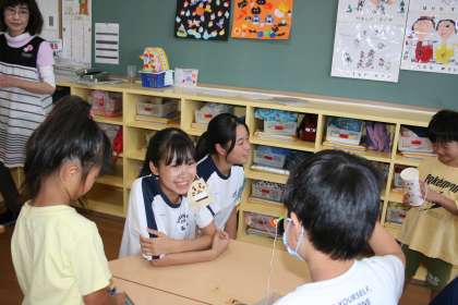 10月1日(火) 3年生保育園訪問 公開日 2024/10/03 更新日 2024/10/03 3学年 3年1組が保育園訪問してきました。 自分で作った手作りおもちゃを持って幼児達と一緒に遊びました。 常盤台保育園の幼児達もとても楽しみにしてくれていたようで、 楽しそうに関わっていました。 最初は緊張していた中学生も時間が経つにつれ、自然体で関わることができました。