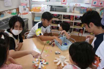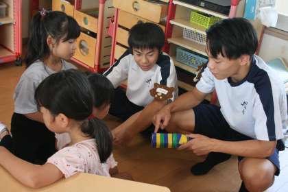 10月2日(水) 3年生保育園訪問 公開日 2024/10/03 更新日 2024/10/03 3学年 今日は3年2組が保育園訪問へ行きました。 生徒は思い思いのおもちゃで幼児と関わっていました。 生徒自身も楽しんでいる姿がたくさん見られました。 3歳児、4歳児、5歳児それぞれの発達段階で違う成長を感じ、 貴重な体験になりました。