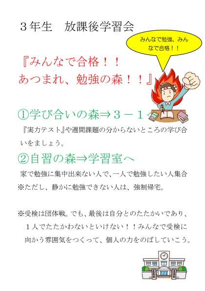 ぜひ、ご家庭でも、「学校の学習会に参加してこられ〜」の温かい励ましの声をかけてあげてください!