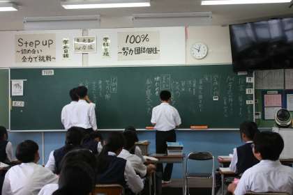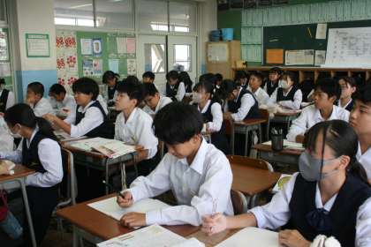 10月4日(金) 1年生授業の様子 公開日 2024/10/04 更新日 2024/10/04 1学年 1−3国語 「星の花が降る頃に」を学習しています。 登場人物について分かることを書き出しています。 1−4社会 奈良時代の貴族について学習しています。 1−5英語 シャドウイングの練習をしています。英文を見ずに発音するのは難しいですね。