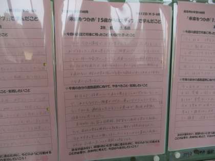 今、3年生の廊下掲示物は「15歳からのステップを終えて」になっています。