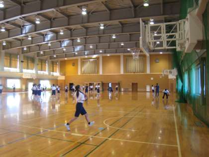今日もレイアップシュートの練習をしています。女子もシュートの成功率が上がってきたようです。