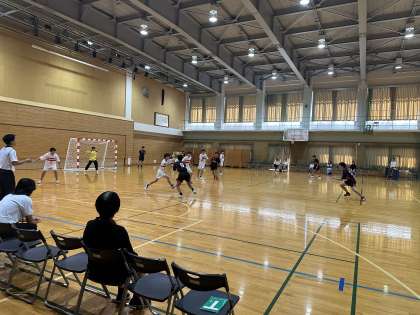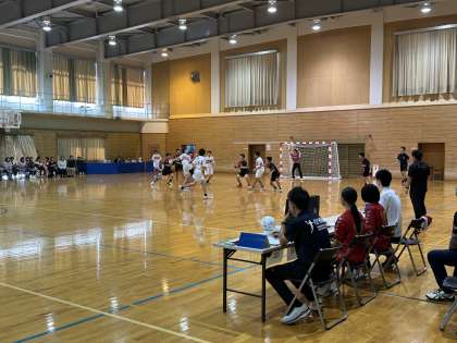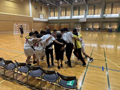 10月12日(土)市新人大会_ハンドボール競技 公開日 2024/10/12 更新日 2024/10/12 部活動 男子ハンドボール部です! 3位決定戦で興南中と対戦し、4-17で敗戦しました。 次は春中予選に向けて、練習に励みます!