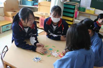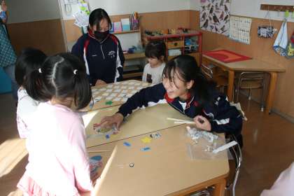 10月15日(火)3年生保育園訪問 公開日 2024/10/15 更新日 2024/10/15 3学年 今日は3年5組が保育園訪問へ行ってきました。 常盤台保育園の子ども達は毎回、楽しみに待ってくれています。 その気持ちに応えられるよう生徒達も頑張って関わっていました。 やっぱり帰り道は保育園訪問の出来事の話でもちきりでした!