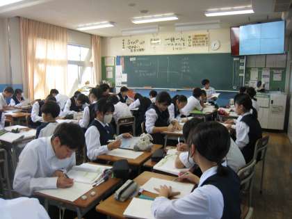 写真上:1組 数学 比例のグラフを描こう