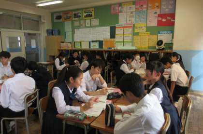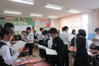 10月22日(火)2学年 国語の授業 公開日 2024/10/23 更新日 2024/10/23 2学年 「月夜の浜辺」を群読しました。どんなことを表現したいか、どんな思いを強調したいか、グループで話し合って分担を決め、練習をしています。