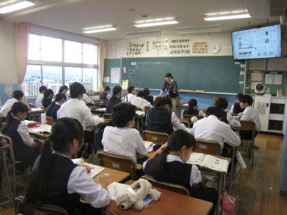 写真下:2組 英語 日本の伝統文化・工芸に取り組む外国人について聞いてみよう