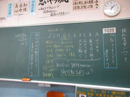 本日6限の総合の授業では、校外学習におけるNG行動について考えました。班で「これは勘弁してほしい!」というNG行動について話し合い、トップ3を決めました。
