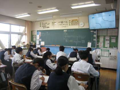 前時までは比例のグラフを描いていましたが、今日からは反比例のグラフに挑戦しています。比例のグラフは直線になりますが、反比例のグラフは曲線になり、難易度がアップしてそうです。