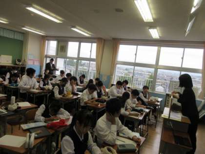 本日、富山市教育委員会、東部教育事務所、富山市教育センター等から先生方にお越しいただき、学校訪問研修会を行いました。午前中、全クラスの授業を参観していただき、午後からの研修会では、生徒の主体性や意欲を伸ばす授業の工夫について、アドバイスをいただきました。研修したことを、明日からの授業等に生かしていきたいと思います。