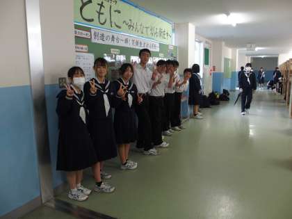 水曜日の朝の「あいさつ運動」の様子です。生活委員が生徒玄関で、朝から爽やかなあいさつをしています。