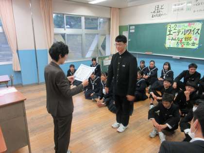 「どのクラスも立派で、甲乙つけがたい合唱でした、みんなよく頑張りました!」と学年主任からの表彰式もありました。