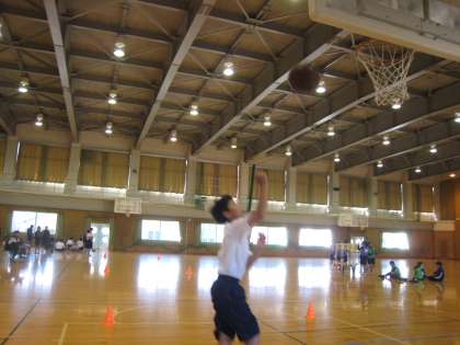 ドリブルとドリブルシュートのテストをしていました。この生徒はきれいなドリブルシュートを決めていました。