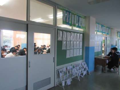 11月15日(金)「総合的な学習の時間」の様子 公開日 2024/11/15 更新日 2024/11/15 3学年 3年生は、教室内でそれぞれの学習を進めながら、廊下で個人面談をしていました。問題集やクラウド教材に黙々と取り組んだり、友達と教え合ったりしている生徒たちの姿は「さすが3年生!」でした。