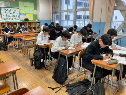 本日行われた進路集会で、学習に対して意欲が高まった生徒が増えたように感じます。悔いの残らない1週間にしましょう!