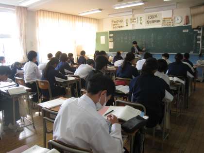 写真上:1組 数学 プリント学習