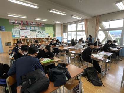 ワークを解きながら質問している生徒もいれば、黙々と学習を進めている生徒もいました。3日間で1番利用者が多く、1番集中していたように思います。有意義な放課後にしてください。