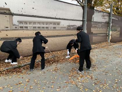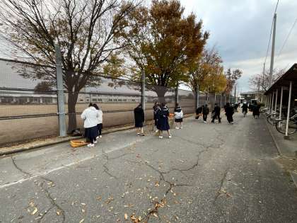 11月21日(木)落ち葉拾いボランティア 公開日 2024/11/22 更新日 2024/11/22 生徒会 放課後に、環境委員会が企画した落ち葉拾いが行われました。 各学年多くの生徒が参加し、雨が降るまでの20分間、一生懸命落ち葉拾いをしてくれました。なんと17袋分も集まりました!活動終了後も、「まだ落ち葉がある!」と進んで拾おうとする姿が何度も見られました。校舎を綺麗にしようとする心が素敵ですね。 今後のボランティア活動にも多くの生徒が参加してくれることを期待しています!