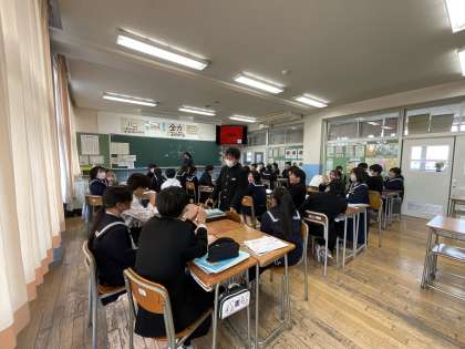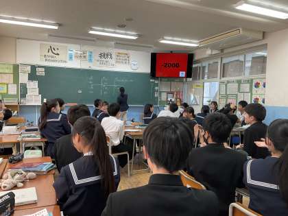 11月21日(木)2学年 英語の授業 公開日 2024/11/22 更新日 2024/11/22 2学年 本日は、ALTとテスト範囲の復習をゲーム形式で行いました。グループ内で教え合う姿もたくさん見られ、楽しそうに復習していました。 英語は期末評価1日目です。今日学習したことを忘れないように勉強しておきましょう!