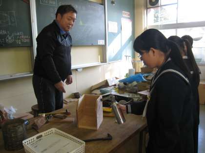 それぞれ、立派な本棚が完成してきています。仕上げとして、ガスバーナーで木をあぶり、本棚に渋い色味をつけ、味を出しています。家でもアンティーク本棚のように使えそうです。